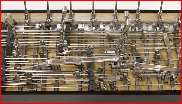Undercarriage of Studio Pro configured with 9 pedals and 8 knee levers. |